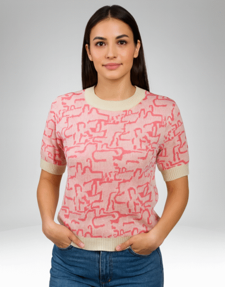 Women’s Abstract Pattern Short-Sleeve Sweater (7361)