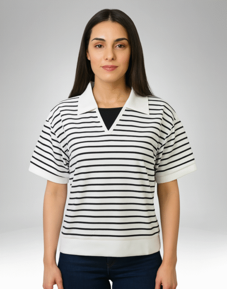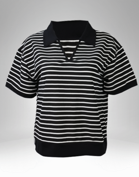 Women’s Striped Collared Short Sleeve Top (18020)