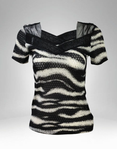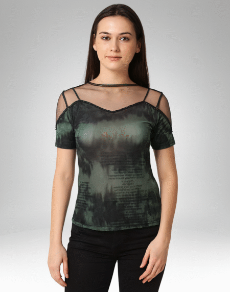Women's Mesh V-Neck Printed Top (6056)