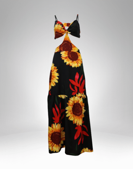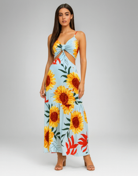 Sunflower Cutout Maxi Dress – Tie-Front, Tiered Hem (6297)