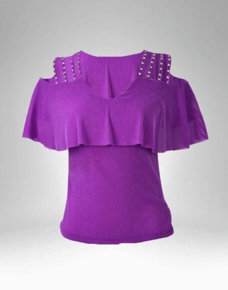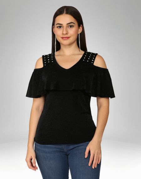 Women’s Cold Shoulder Ruffle Top with Studded Straps (6818)