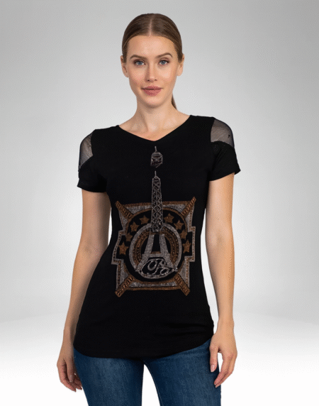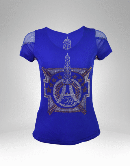 Eiffel Tower Rhinestone Short Sleeve Top (8821)
