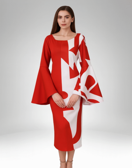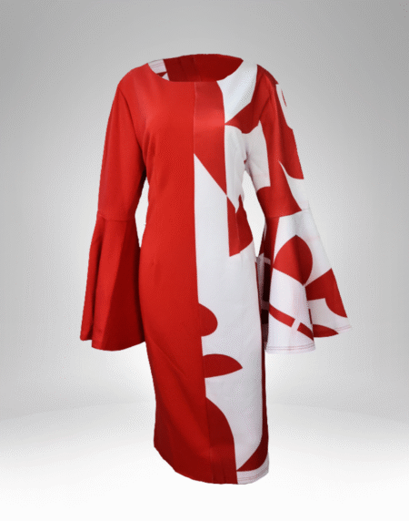 Red & White Bell Sleeve Midi Dress (BL185)