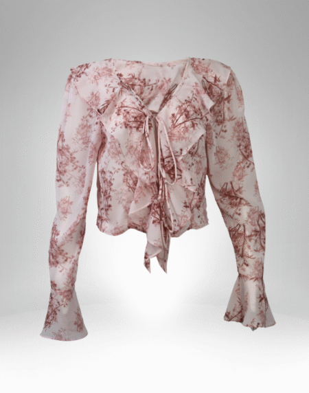 Women's Floral Ruffle Tie-Front Blouse (8525)