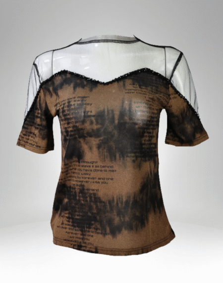 Women’s Sheer Overlay Tie-Dye Script Top (6068-1)