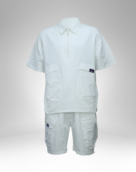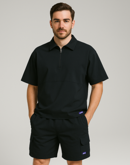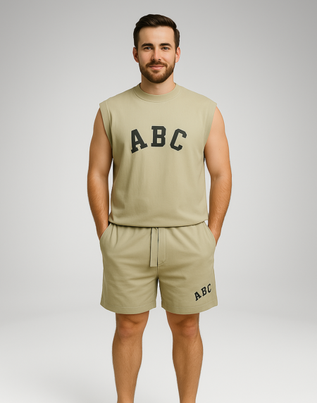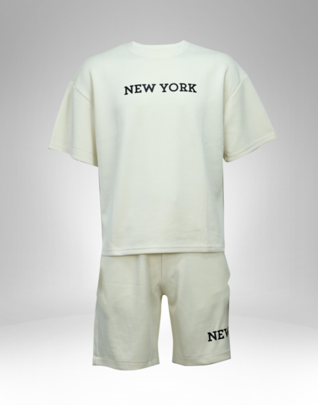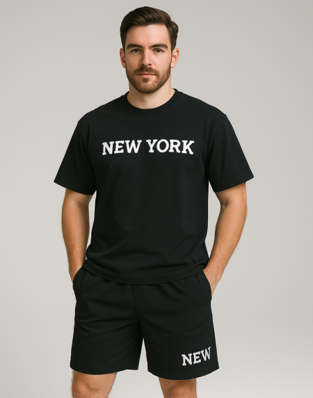 Pair the full set with white sneakers for a sporty streetwear vibe or wear the t-shirt with denim shorts for a more casual weekend outfit. The shorts also work well with a plain tank top for a relaxed summer style.