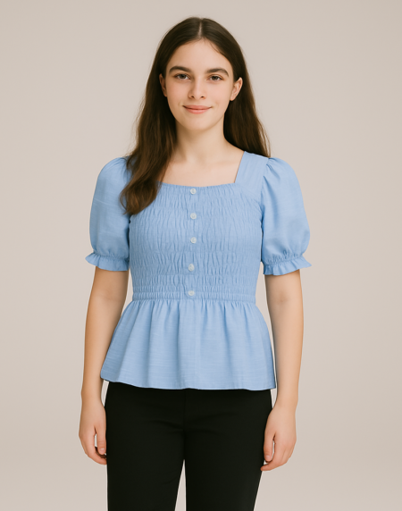 For a chic office look, pair this Lady Top with tailored trousers and heels. On the other hand, for a relaxed outfit, wear it with skinny jeans and ankle boots. Additionally, accessorize with a statement belt or minimal jewelry for extra sophistication.