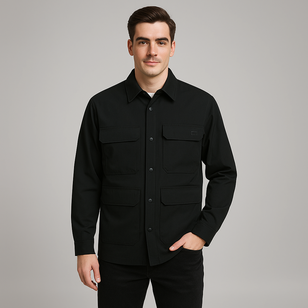 This Modern men’s cargo jacket effortlessly combines utility with modern style, making it a versatile staple for any wardrobe. Designed with durable, high-quality fabric, the shirt features a relaxed fit that enhances comfort without sacrificing style. It includes multiple front pockets that are both functional and stylish, perfect for storing small essentials while on the go.