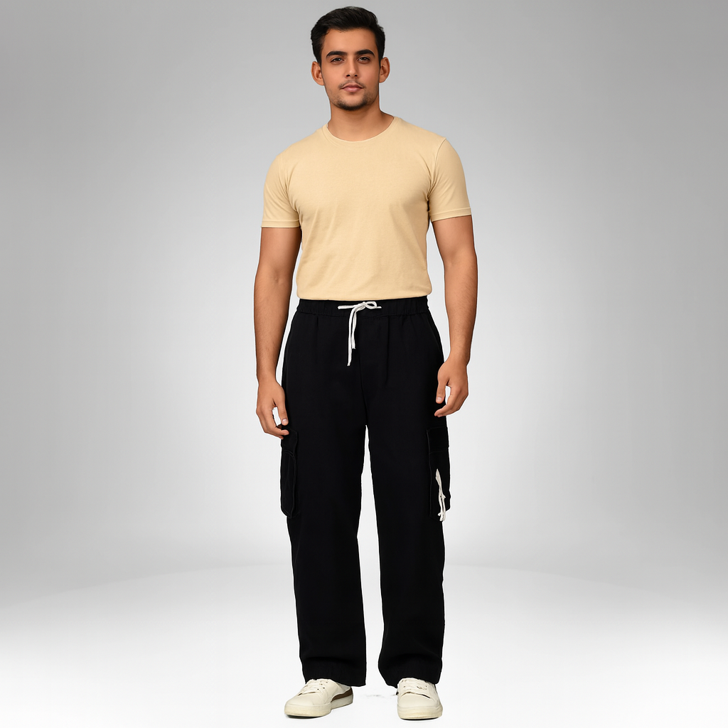 Designed with a relaxed fit and adjustable drawstring waist, these pants ensure a customized fit for maximum ease of movement. The soft yet durable material makes them ideal for both casual outings and semi-formal occasions, offering a trendy yet effortless look. The addition of utility-inspired cargo pockets adds a functional touch, making these pants a must-have for modern men on the go.