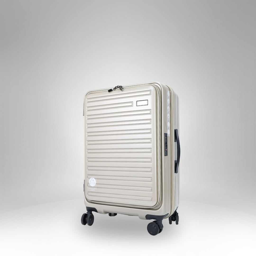 This elegant carry-on luggage pairs perfectly with business suits or casual travel outfits, making it versatile for any occasion. Its sleek and modern design complements a variety of travel wardrobes.