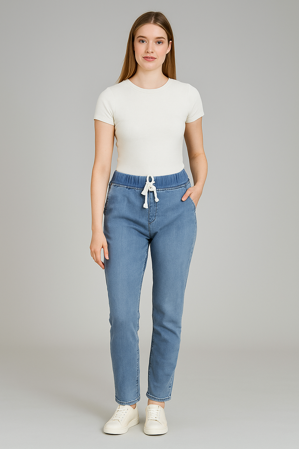 The Casual Denim Jogger Pants from Time Bag are a perfect blend of style and comfort. Combining the classic look of denim with the relaxed fit of joggers, these pants offer the best of both worlds. The elastic waistband and adjustable drawstring ensure a comfortable and flexible fit for all-day wear, while the tapered leg design adds a sleek, modern touch. Whether you’re running errands or relaxing on the weekend, these jogger pants are the ultimate choice for effortless style.