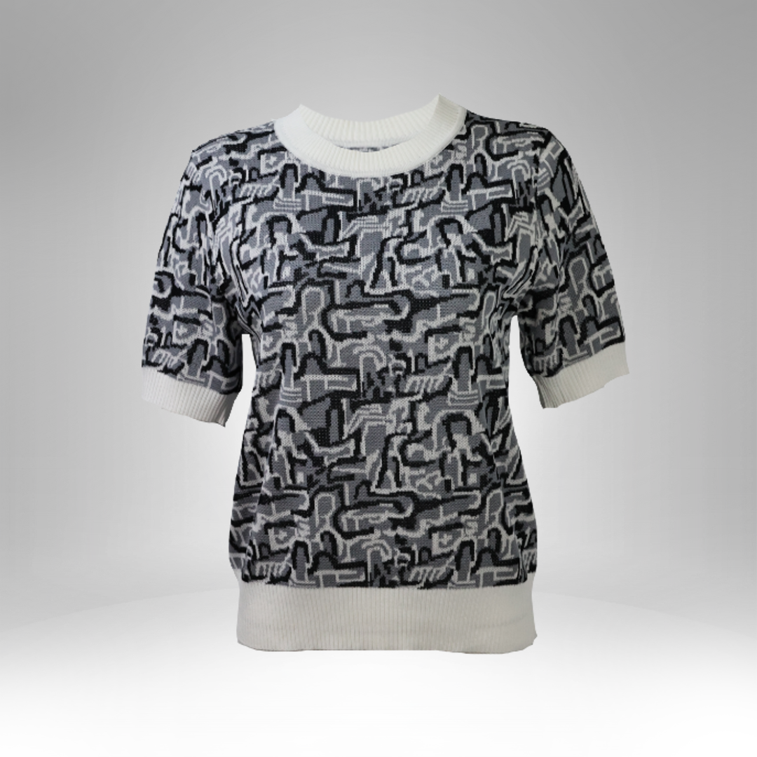 Elevate your wardrobe with our Women’s Abstract Pattern Short-Sleeve Sweater – a perfect blend of style, comfort, and versatility. Designed with a contemporary abstract pattern, this sweater brings a fresh and artistic touch to your everyday look. Crafted from soft, breathable knit fabric, it offers a lightweight feel, making it ideal for year-round wear.