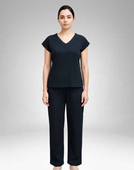 Crafted from soft, breathable fabric, this set is perfect for casual outings, travel, or lounging at home. The hoodie top features a subtle chest detail for a modern touch, while the pants provide a flattering straight-leg silhouette that pairs seamlessly with sneakers, sandals, or casual flats.