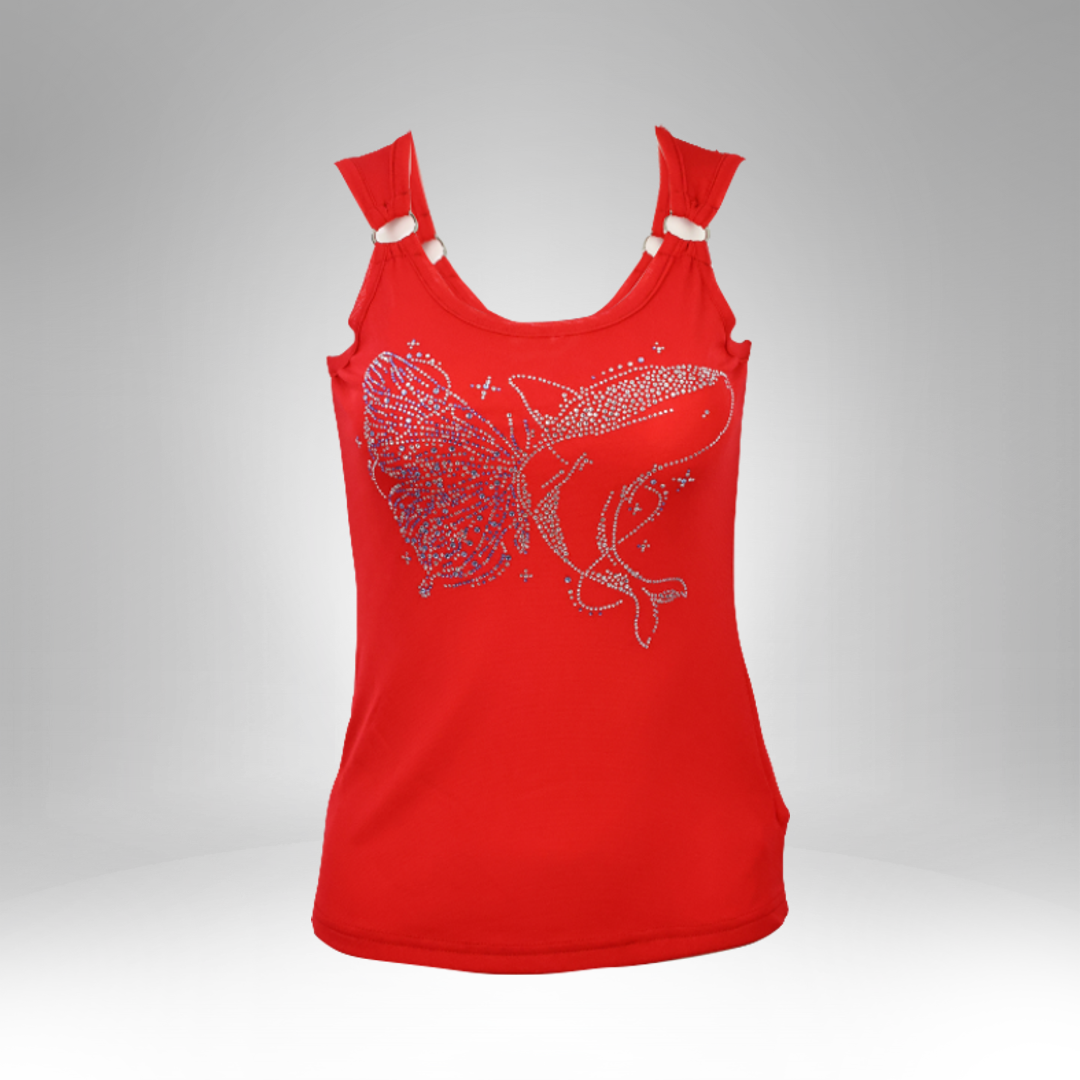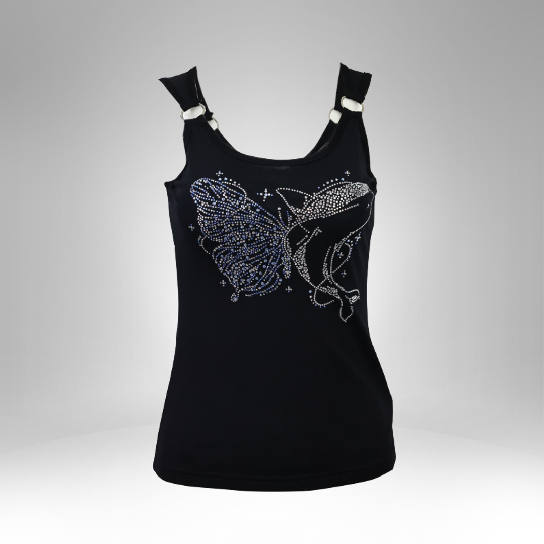 Make a splash in style with our Women’s Embellished Whale & Butterfly Tank Top, a perfect blend of casual comfort and eye-catching elegance. This sleeveless top features a stunning rhinestone-studded design of a graceful whale intertwined with a delicate butterfly, symbolizing freedom, beauty, and strength. The intricate embellishments shimmer under the light, adding a subtle yet sophisticated sparkle to your everyday look.
