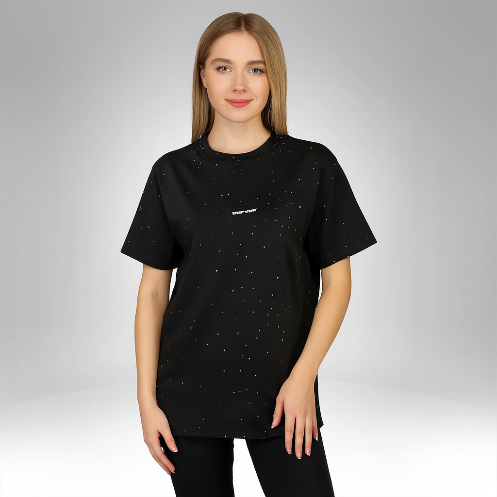 Refresh your casual wardrobe with our Women’s Oversized Speckled T-Shirt — the perfect balance of comfort, style, and individuality. Designed for the modern woman who values ease and versatility, this tee features a relaxed oversized silhouette that drapes effortlessly over the body, offering all-day comfort without sacrificing style.