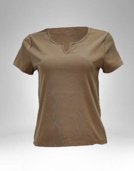 The relaxed fit provides easy movement, while the short sleeves and classic crew neckline keep the look timeless and flattering. A small decorative stitched detail below the neckline adds a subtle touch of uniqueness. Available in multiple versatile shades, it easily complements any wardrobe and pairs effortlessly with jeans, skirts, shorts, or lounge pants.