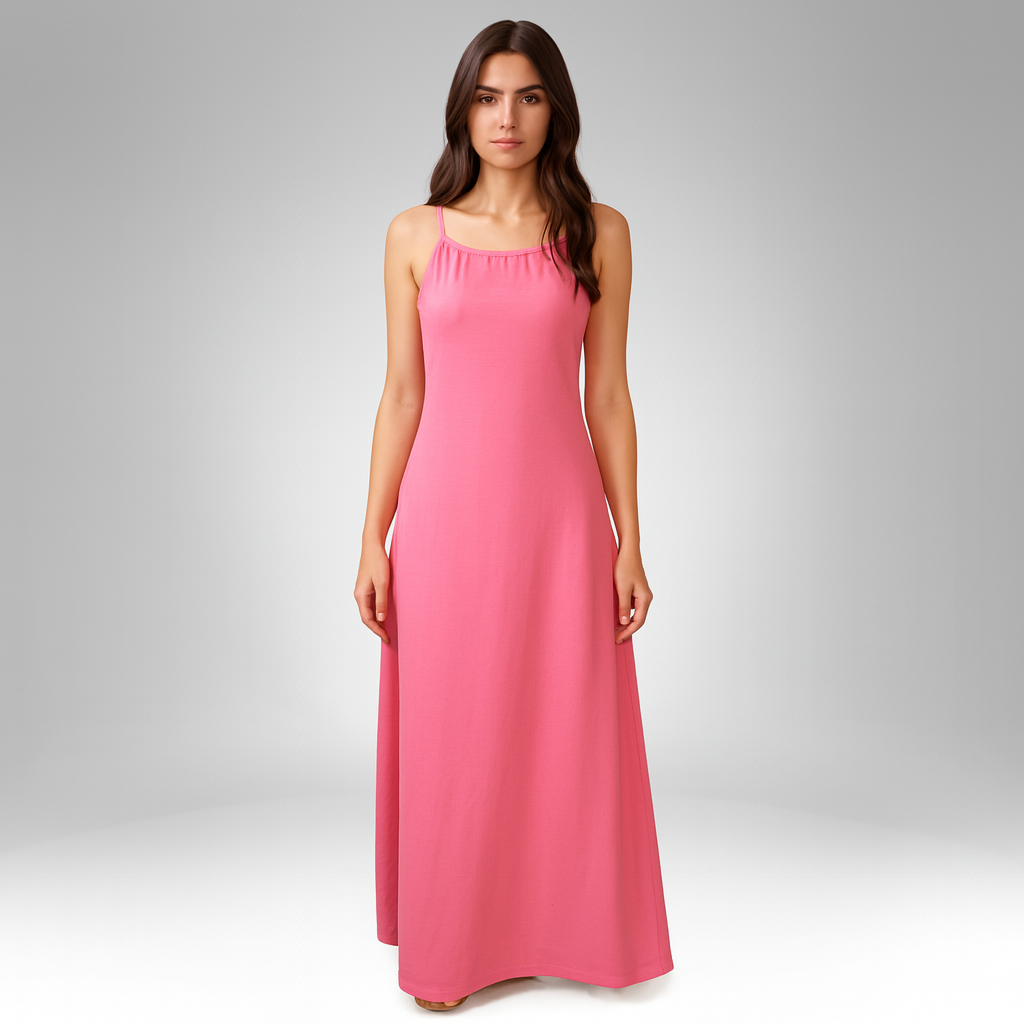 Elevate your warm-weather wardrobe with our Women’s Sleeveless Spaghetti Strap Maxi Dress, a timeless piece designed for effortless elegance and everyday comfort. Featuring a sleek, minimalist silhouette, this dress is perfect for both casual days and evening occasions. Its slim-fit bodice flows gracefully into a full-length skirt, creating a flattering and elongated look that complements all body shapes.