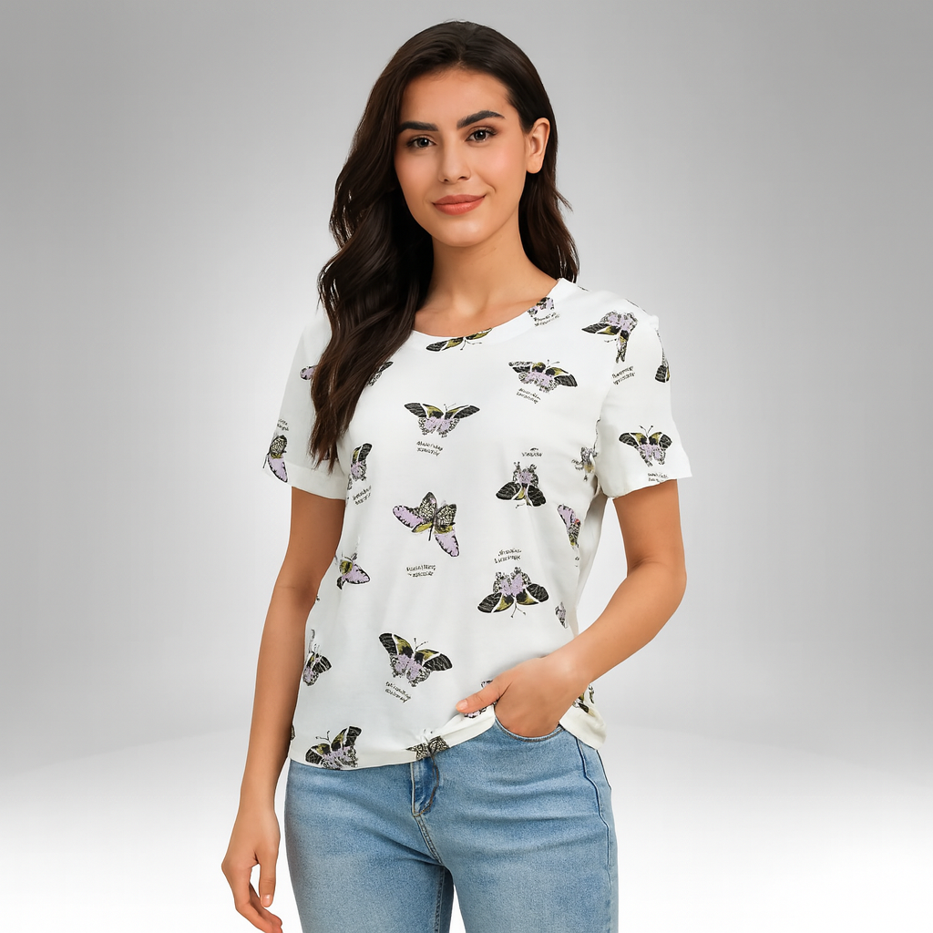 Women’s Butterfly Print Graphic T-Shirt: Fun and Stylish