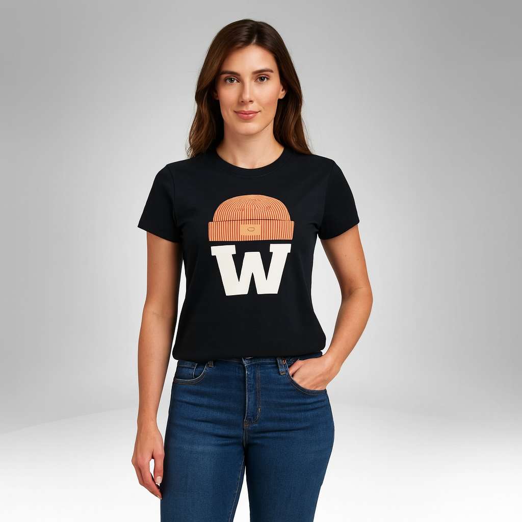 Add a touch of personality to your wardrobe with the Whimsical Beanie Graphic Tee from Time Bag. Featuring a charming graphic of a beanie atop a bold “W”, this tee effortlessly combines fun and style. The playful design is complemented by soft, breathable fabric, making it perfect for all-day comfort. Whether you’re heading out for a casual outing or just relaxing at home, this graphic tee provides both style and ease.