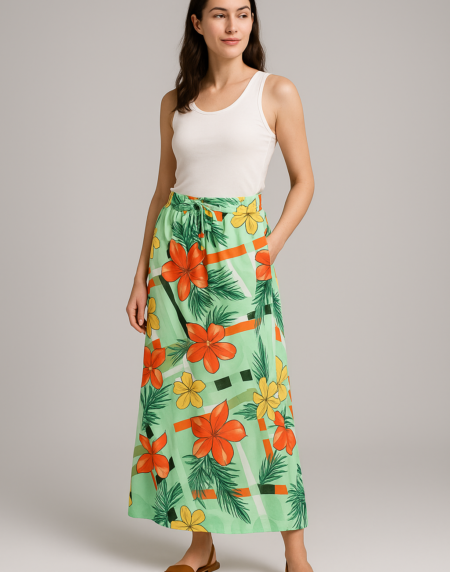 Pair it with a button-front crop top and ankle boots for a trendy streetwear look, or tuck in a chiffon blouse with heels for a casual-chic date outfit. For cooler days, layer it with tights and a cropped jacket.