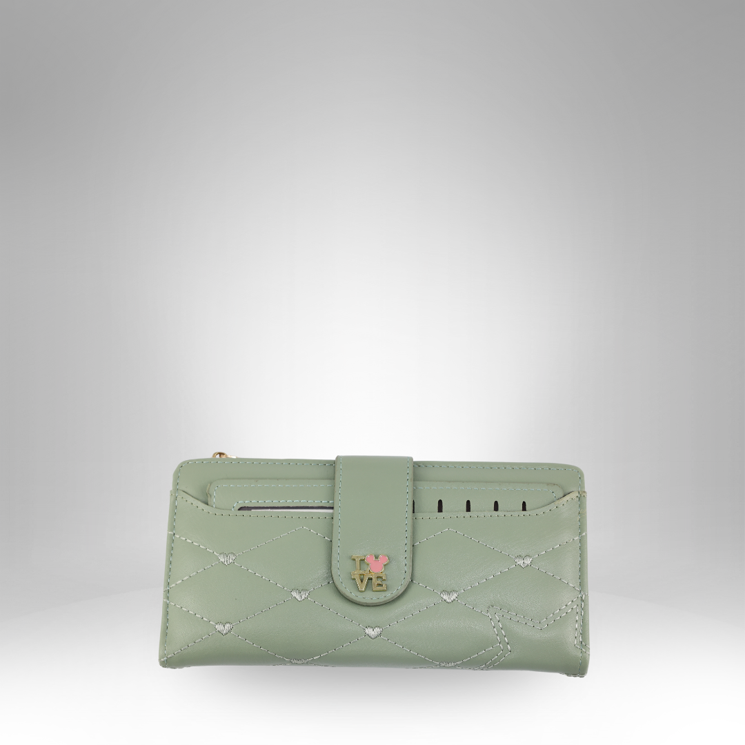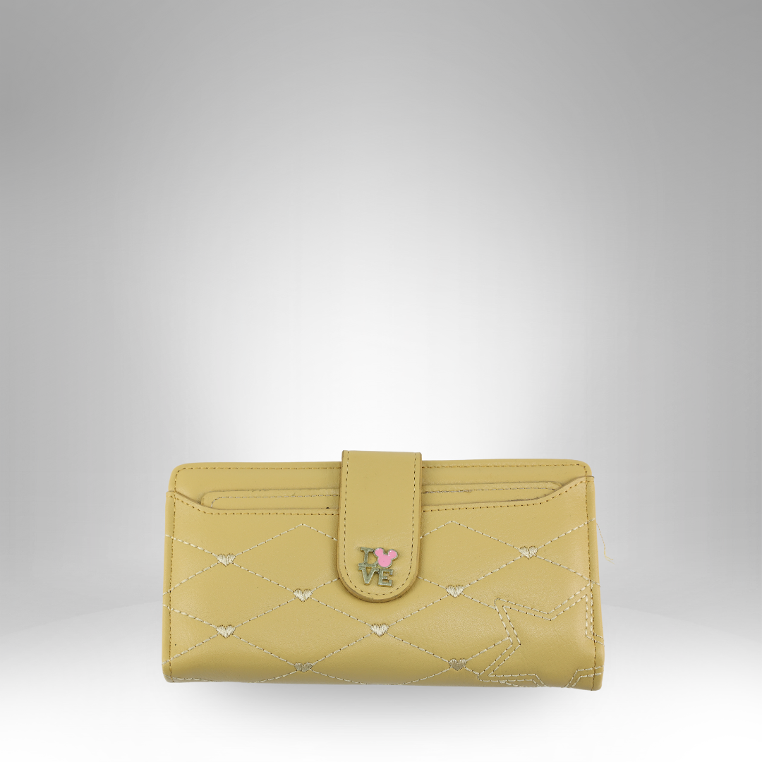 Crafted from high-quality rexin material, this wallet provides long-lasting durability while maintaining a luxurious feel. The quilted texture enhances its sophisticated look, making it an accessory that stands out. The soft-touch finish adds comfort, while the snap-button closure ensures everything stays secure. Additionally, the “LOVE” emblem on the front flap brings a charming touch to its overall design.